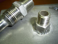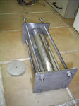 The air tank is made from a thick-walled stainless steel pipe, which is welded to two 6mm thick stainless steel plates, and then further held down by 4 M8 threaded rods and 8 nuts. This tank is very strong and I have no doubt it can hold a few hundred psi with ease.
